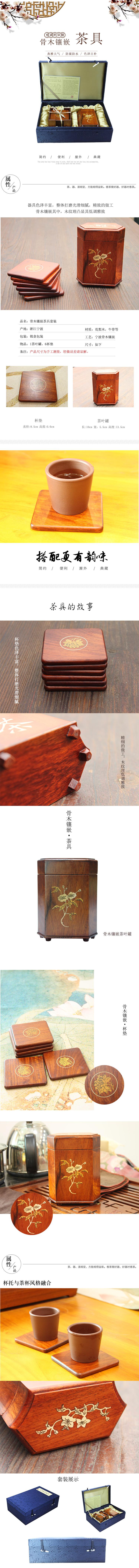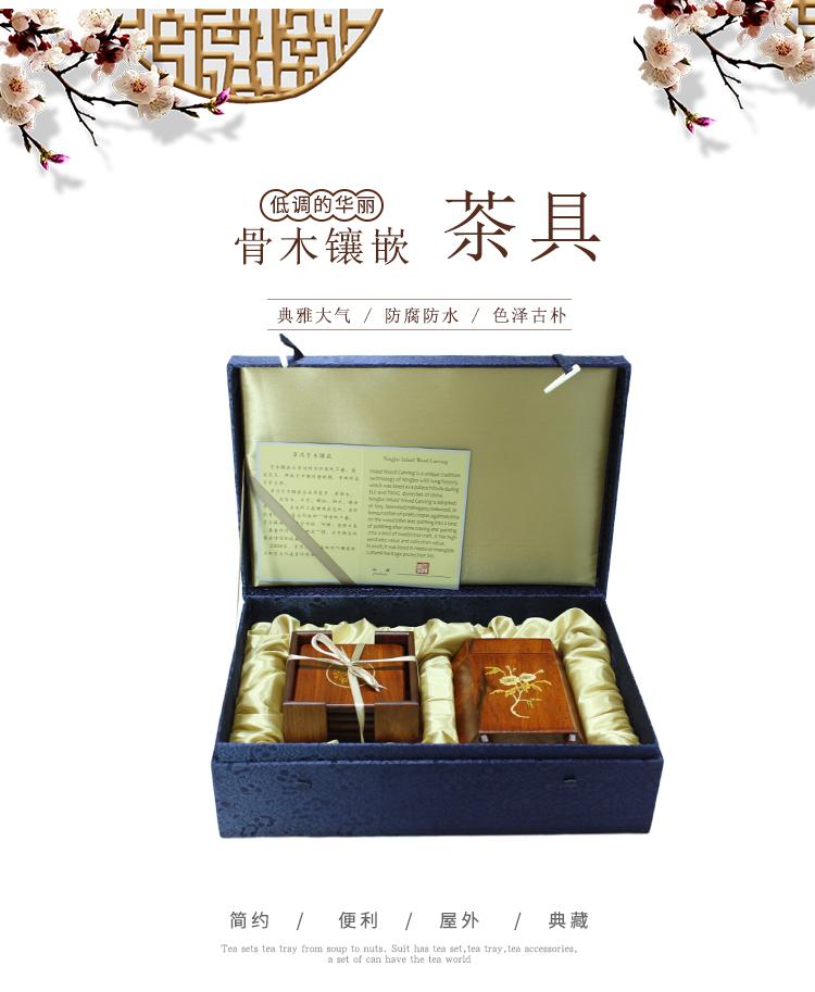产品说明:【名称】 骨木镶嵌精装茶具套装 【工艺】 宁波骨木镶嵌 【材质】 生漆、红木 、贝壳、牛骨等 【产地】 宁波 【尺寸】 如图(手工测量略有误差)