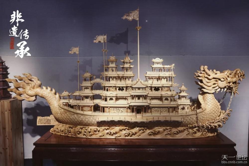 这条龙船由童老师和8位经验丰富的匠人,花了半年时间精雕细刻而成,是宁波雕刻技艺水平高超的见证。龙船长2.98米,宽0.68米,高1.68米,龙船上的亭台楼阁层层叠叠,装饰上借鉴了苏州园林的窗花特色,每一层的窗花都不相同,将中华民族昂首奋进、气壮山河的豪情和传统典雅的民间工艺技巧融为一体。今天就到这里,下次再见!