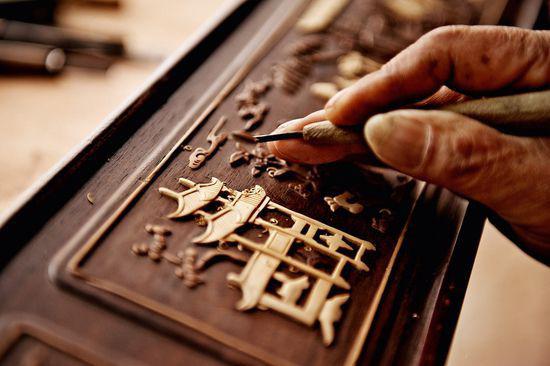 宁波骨木镶嵌(宁波文化礼品)具有形象的装饰性,画面的形象在黑白的衬托中显示出剪影效果,具有民间特点的装饰性,美观大方。宁波骨木镶嵌的品类繁多,与人们的日常生活密切有关,实用性很强,一般可以分为三大类。一是传统家具类:包括床、榻、衣箱、开门箱、幢橱、八仙桌、茶桌、大座、太师椅穿堂、摇椅、马桶箱、床头柜、挂屏、座屏、落地屏、沙发等。二是生活用品(工艺品)类,包括砚盒、首饰箱、梳头箱、果盒、牌箱、印泥盒、镜框、茶盘等。三是门、窗、挂落、凭栏等建筑装饰。